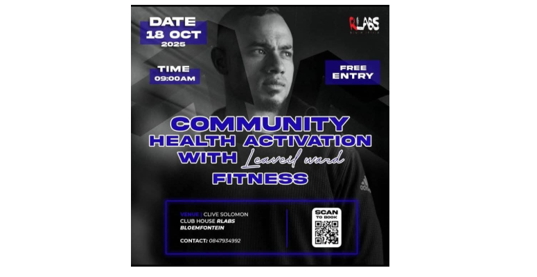 RLabs Bloemfontein invites the community to a Free Health Activation with fitness trainer Leaveil Ward, promoting wellne